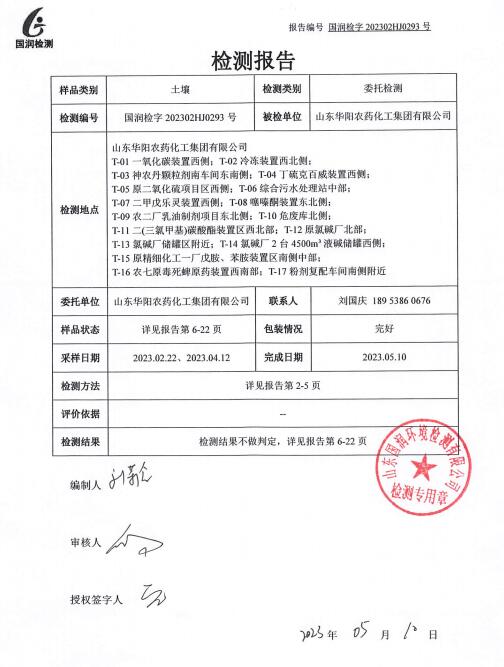 山東華陽農(nóng)藥化工集團有限公司土壤檢測報告